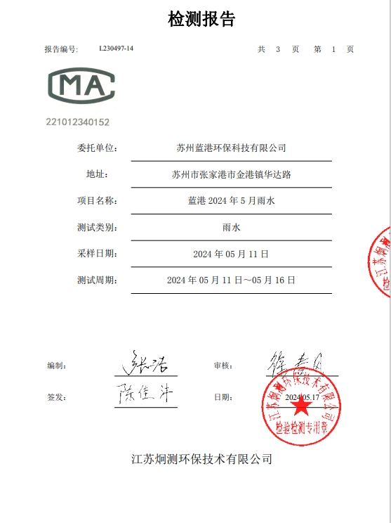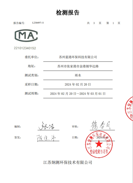 蘇州藍港環??萍加邢薰緳z測報告已公示,詳情請查...